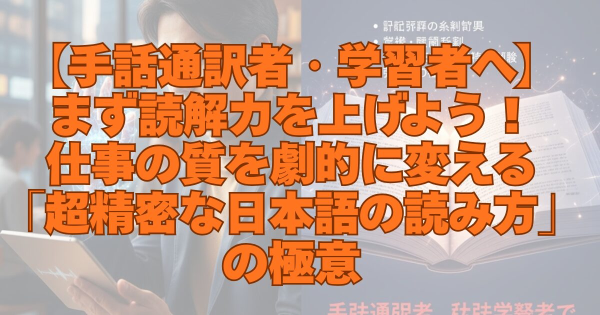 まず読解力を上げよう!仕事の質を劇的に変える「超精密な日本語の読み方」の極意【手話通訳者・学習者へ】