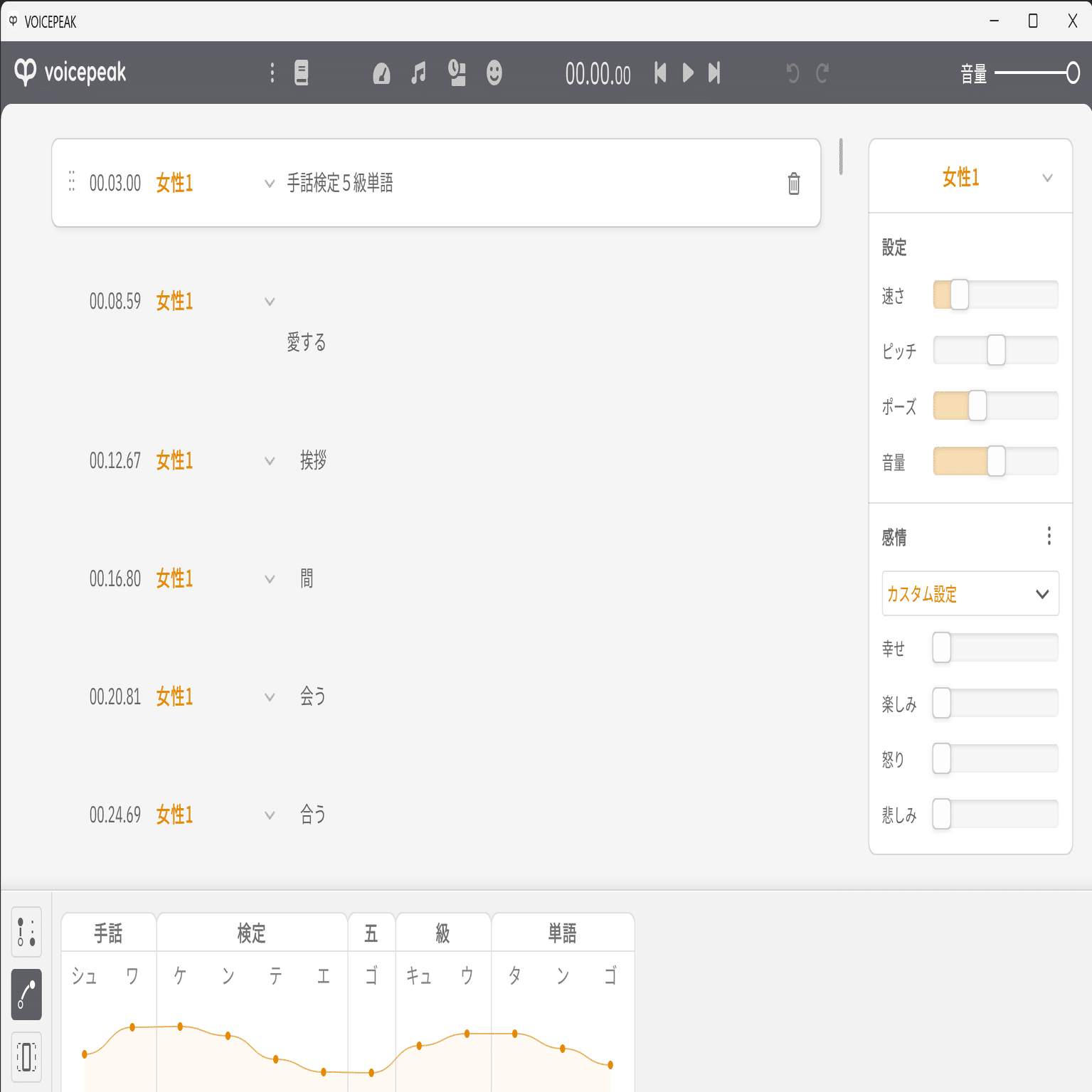 1. 「ボイスピーク」というアプリで単語を3秒間隔でAI嬢に発音してもらう。抑揚を整える。読み方をチェックして修正する。作業は5時間ほど。